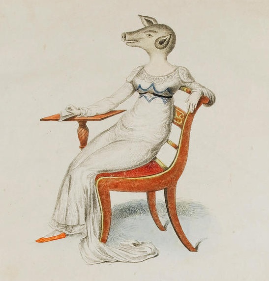 In this particular account, our pig-faced lady was sadly left to die an old maid (or sow, if you prefer). Other accounts have happier, if less likely, conclusions. The woman’s pig-like appearance was the result of witchcraft. A husband was found, and he was granted the choice of having her appear beautiful to him but pig-like to others, or pig-like to him and beautiful to others. When the husband told her that the choice was hers, the enchantment was broken and her pig-like appearance vanished. And in some modern accounts, the pig-faced lady is abducted by aliens.