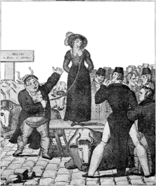 Earlier centuries saw a great many practices that were commonplace then but which would be considered inappropriate in our more enlightened age. Nowhere was this truer than in (merry old) England — purchasing a plump Irish child for special dinner occasions in the 18th century, for instance, or in the 19th century, selling a spouse one had grown weary of. One such sale took place on April 8, 1832, an account of which was recorded for the amusement of generations that followed. Joseph Thompson, a farmer, had been married for three unhappy years when he and his wife decided to call it quits. As was customary, Thompson took his wife to town and set her up for public auction. At noon, the sale commenced with Thompson delivering a short speech: