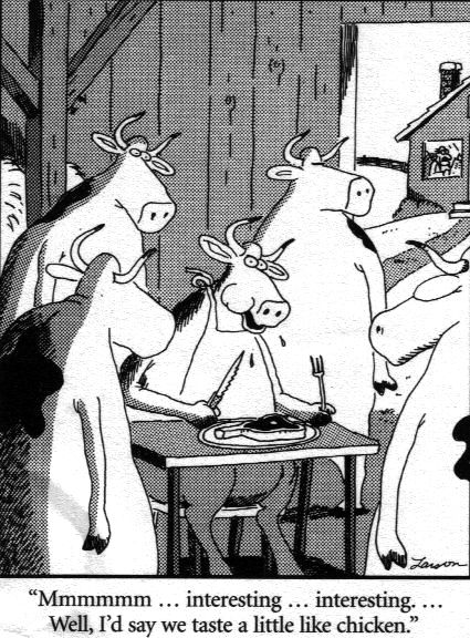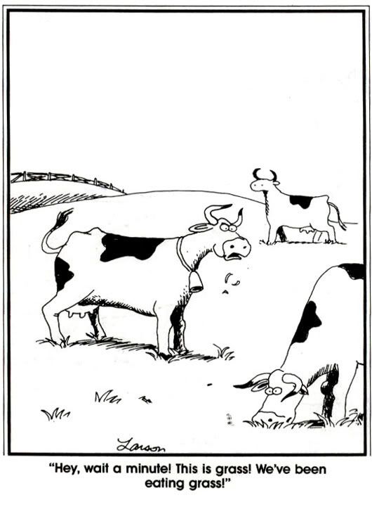 Of course the biggest difference between Real Butter and that phony stuff is cows or the lack of them. Cows are warm and cuddly. And they’re fun. Just ask Gary Larson.