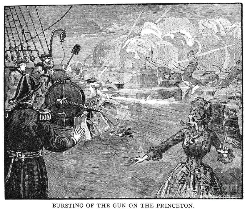 Okay, not so romantic, but if you’re the President of the United States, recently widowed, and you’ve just proposed marriage to an enchanting 20-year-old, it may be the best you can do. And so it was, that President John Tyler (Tyler Too of Tippecanoe-And fame), was on board the USS Princeton on February 28, 1844, for a demonstration of a fancy new 27,000-pound cannon lovingly called the Peacemaker. Julia Gardiner, whose yes vote the President was seeking, was there with her sister and father David, a wealthy New Yorker. The co-designer of the cannon, John Ericsson, was on board; so was the Secretary of War, other cabinet members, congressmen, political and business dignitaries, reporters and other various hangers on. An intimate little gathering. One can imagine 400 breaths being held in anticipation of Julia’s answer.
