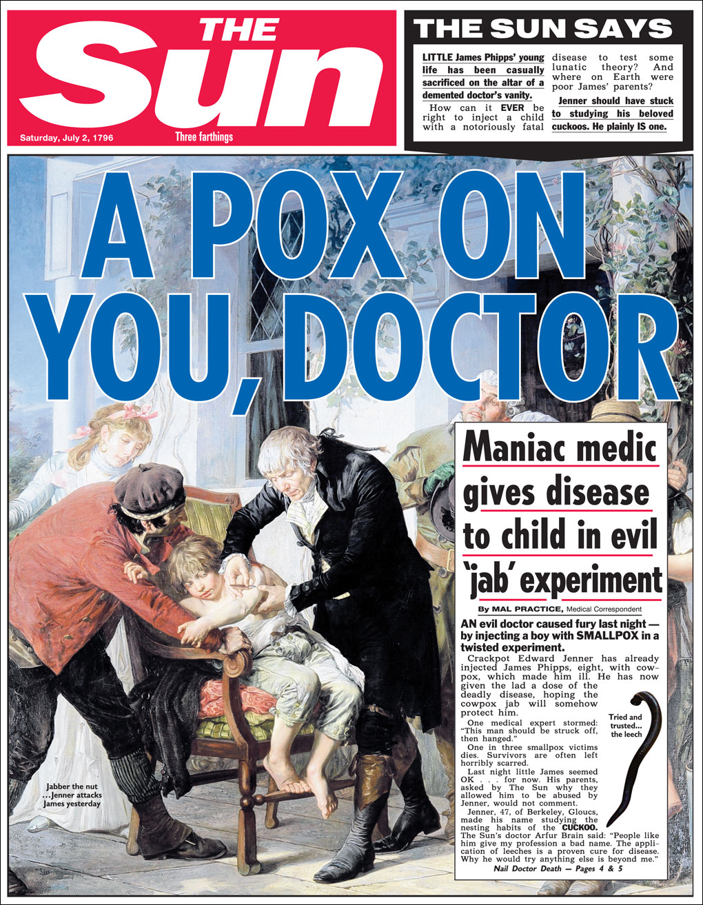 Edward Jenner established the principles of vaccination, proving that it was possible to prevent suffering and death from infectious diseases by artificial inoculation. His findings were made public on May 14, 1796. Rarely has there been a discovery so beneficial and rarely has such a discovery provoked such virulent opposition. It began immediately with a barrage of outrageous charges and continues today, largely on the Internet. (Measles, anyone?)