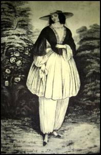 At a ball in Lowell, Massachusetts on July 23, 1851, a certain type of apparel made its debut. It was a more practical substitute for the cumbersome, stifling, long full Victorian dresses worn at the time, and consisted of baggy pants narrowing to a cuff at the ankles (worn below a skirt), intended to preserve decency while being less of a hindrance to women’s activities.