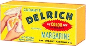 The answer, of course, was to color the stuff to make it look like Real Butter. But not so fast. It seems that discontented cows saw yellow margarine as a threat to the butter industry. They rose up and secured legislation prohibiting the sale of yellow margarine. Ever the outlier, New Hampshire went so far as to require pink-colored margarine.